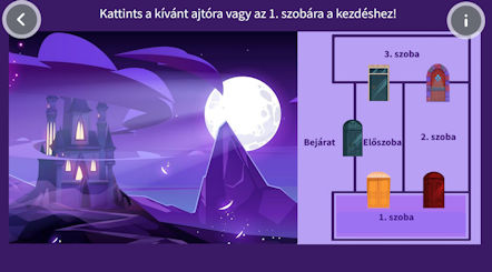 Minden szoba kb. 7-7 feladatot tartalmaz vegyesen: