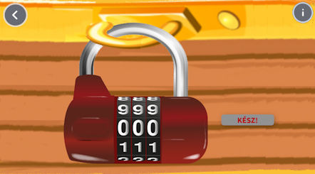 Viszont! Keresd meg a kincsesládát! A lakaton forgasd ki a szükséges számkódot. Ha kinyílik a lakat, a ládában találsz egy kulcsot, a kulcson egy feliratot, amit jegyezz meg!